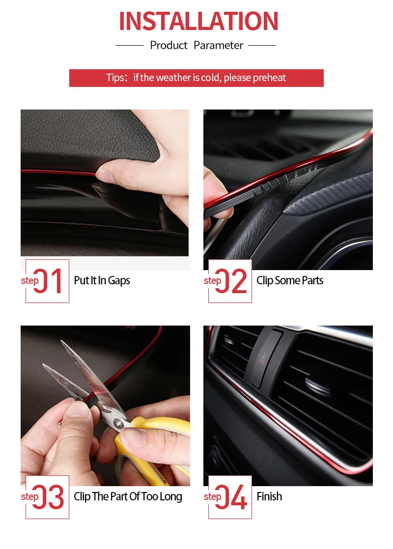 Material Type:Dashboard Air Outlet Steering-wheel Styling Interior Decoration Line S