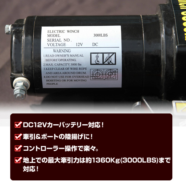 巻き上げ重量:3000LBS (1361Kg)