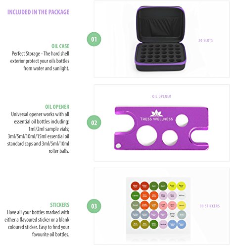 - ★SUPER USEFUL BONUSES: The case comes with a EO Bottle Opener so that you never have to resort to teeth, fingernails or knives to remove bottle or reducer caps; You will also receive 192 Sticker Labels: 96 pre-printed and 96 blank (just color, no text), to quickly find the oil you need