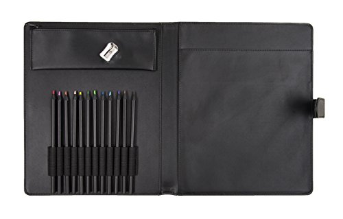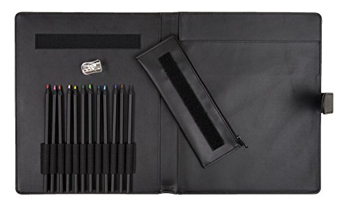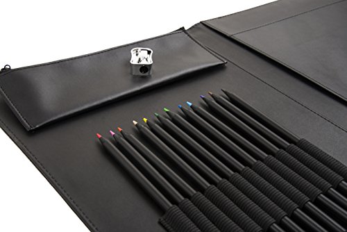 - Pack up your favorite coloring book in this handy pu leather portfolio folder . 12 quality colored pencils pre sharpened included as a bonus in these art kits.
