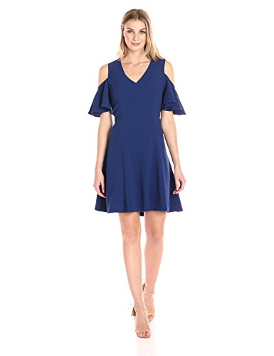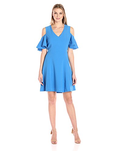 Oversized ruffled sleeves pair with a flared skirt for a dramatic silhouette in this cold-shoulder dress