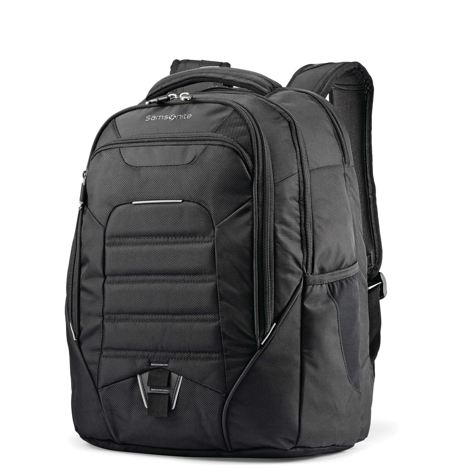 UBX Commuter Backpack – The Ultimate Backpack for the Urban Commuter. Holds all of your gear for local commutes and urban adventures.•Separate padded laptop compartment hold up to a 15.6" laptop.• Dedicated tricot lined tablet pocket.• Constructed with durable and water-resistant fabric with foam padding.• Front pocket organization for all of your business needs including key fob.• Dual side pockets for water bottles or other quick stash items.• SmartSleeve™ fits over upright handles for easy mobility.• Padded back and shoulder straps.• Multiple zippered quick stash pockets.• Padded top carry-handle.• Sunglass loop holder on shoulder straps.• 360 degrees of reflectivity.• Weight: 2.6 lbs.Body Dimensions: 18.0" x 13.5" x 8.5"