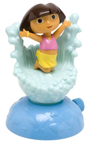 Studio : Imperial Toy Publisher : Imperial Toy Binding : Toy Product Description Everyone's favorite bilingual explorer cools things off when the weather heats up with this backyard must-have. Dora-themed sprinkler spins around, unleashing two sprays of water. Simply hook it up to your own garden hose. Measures 7"L x 7.5"W x 10.5"H. 0