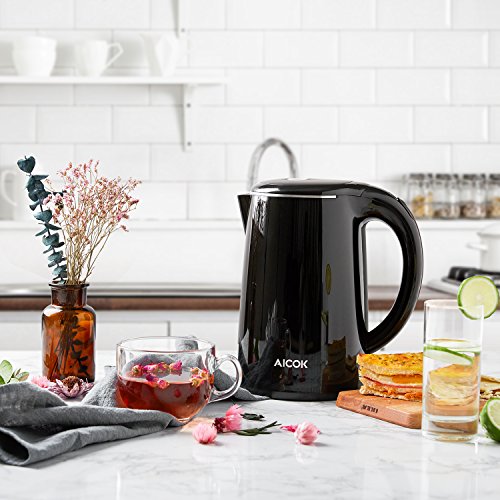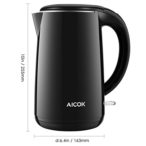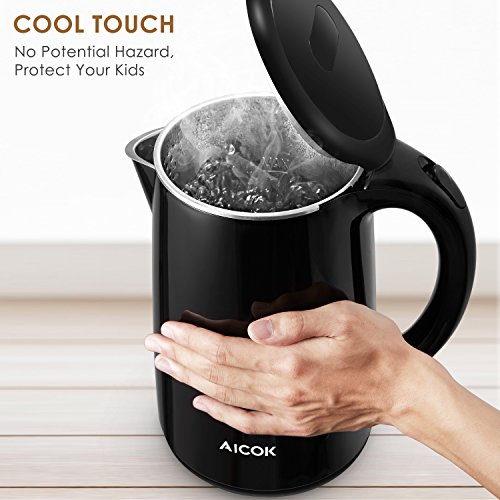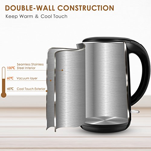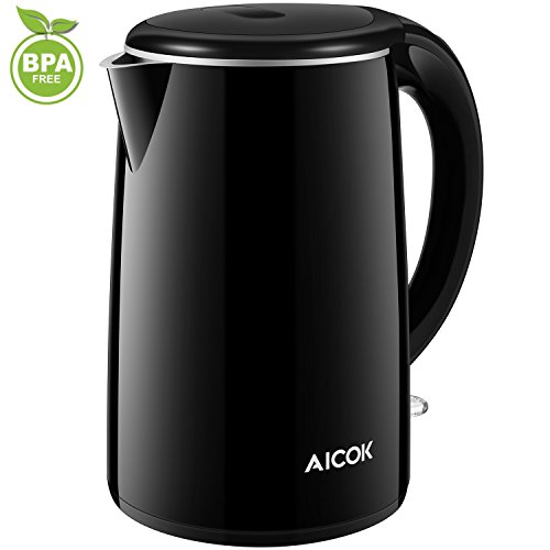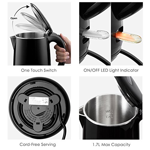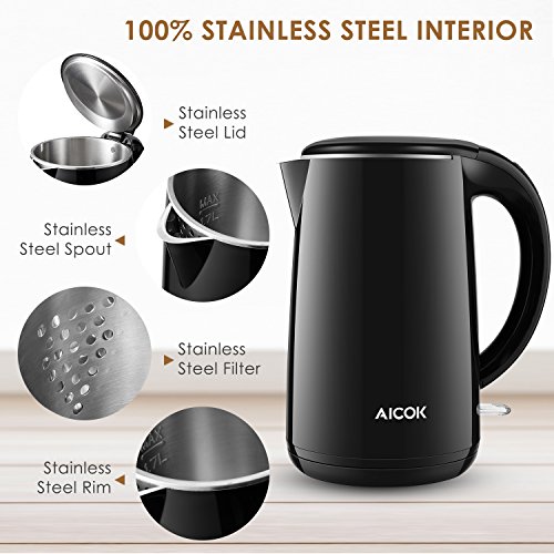 Aicok Wasserkocher Edelstahl | Elektrisch | Set | BPA frei | Kabellos | Leise | Doppelwandige Isolierkanne | LED | Kabelaufwicklung | Express Temperatur | 360 Grad | Antikalk | 1,7
