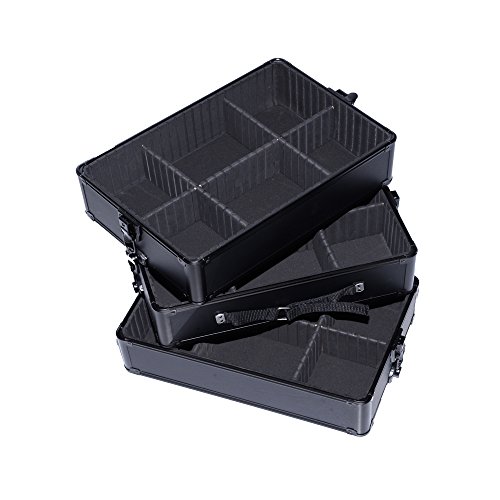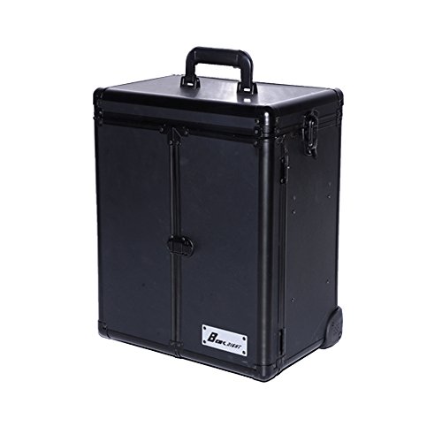 Durability:The rolling Cosmetic Makeup trolley is built with high quality silver color Aluminum frame, black ABS surface, Velvet lining, reinforced stainless Steel Corners, 2-Wheel