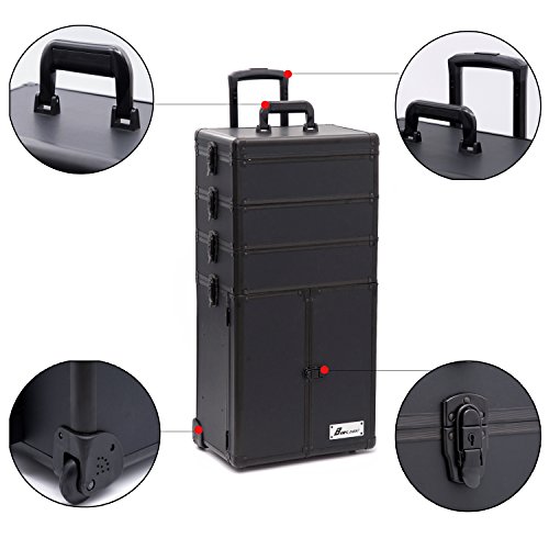 4 in 1 Professional Multifunction Artist Rolling Trolley Makeup Beauty Train Case Salon Cosmetic Organizer (#2 black)