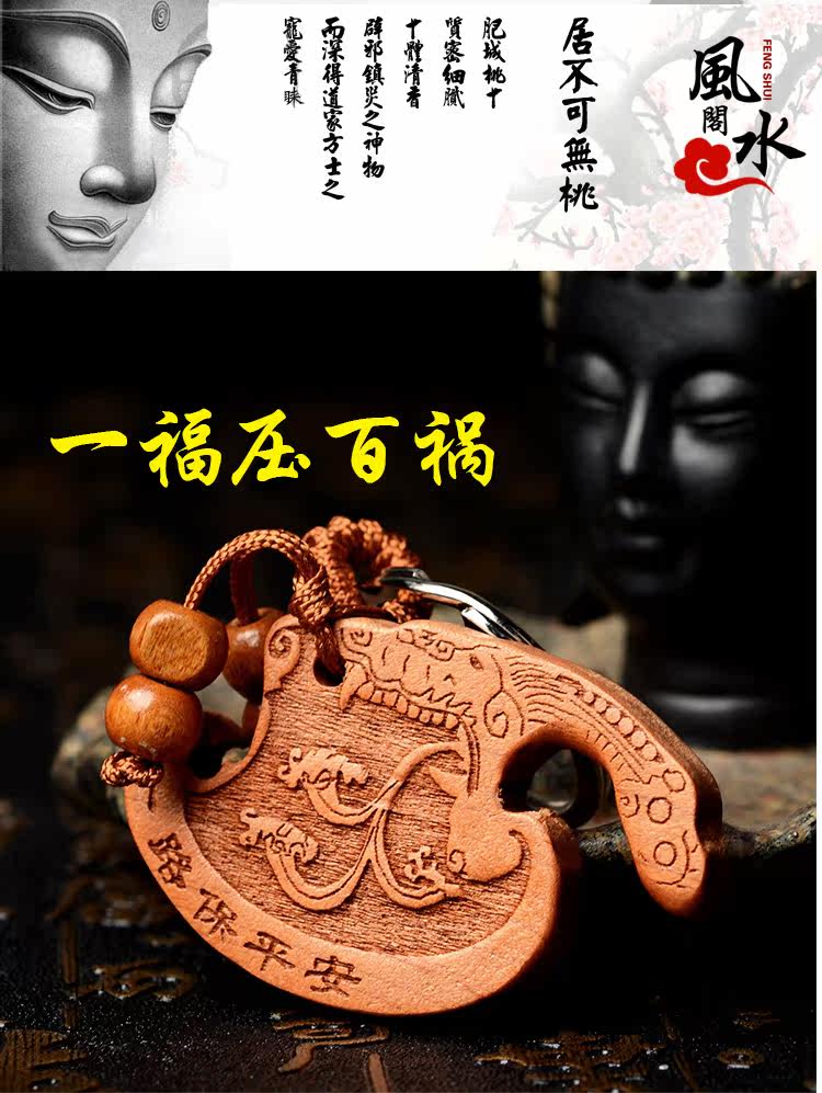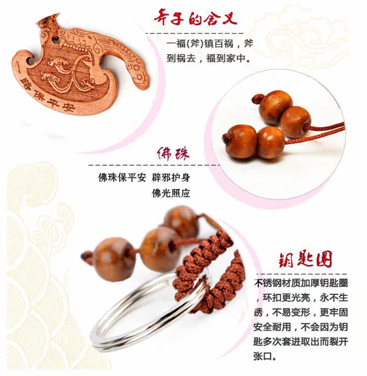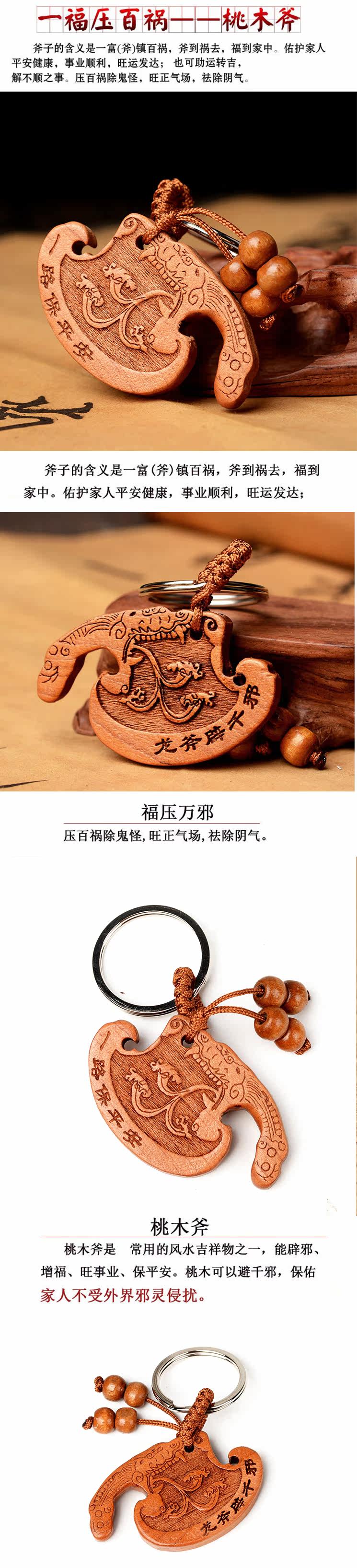 桃木斧子钥匙扣挂件桃木龙头斧汽车钥匙挂饰木雕家居饰品