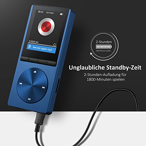 Unglaubliche Akku-Lebensdauer und Vielseitig Ladezeit ca.1,5 Stunde, Standby Zeit ca. 30 Stunden. Die Player unterstutzt MP3, WMA, WAV, OGG, APE, FLAC und andere verlustfreie Musikformate. Geniessen Sie Musik, Radio und Bilder, auch kann E-book Lesen oder aufnahmen.