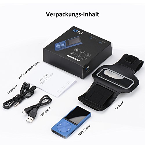 VicTsing tragbare 8GB Sport MP3 Player Bild Musik Player mit Spor Musik Player mit FM, unterstuzen 64GB Micro SD, Media Player, Ebook, t Armband kopfhorer und USB kabel -Blau