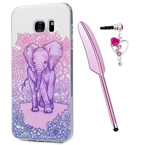 Samsung Galaxy S7 Edge Case, Galaxy S7 Edge Case, Ultra Slim Clear Protective Soft TPU Rubber Cover Pink Mandala Totem Flower Floral Bumper for Samsung Galaxy S7 Edge ZSTVIVA - Samll Cute Elephant