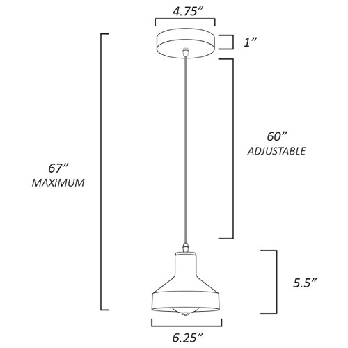 - DIMENSIONS: Overall 6.25"Dia x 67"H. Shade 6.25"Dia x 5.5"H. Ceiling Canopy 4.75"Dia x 1"H