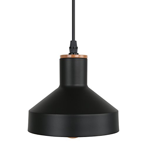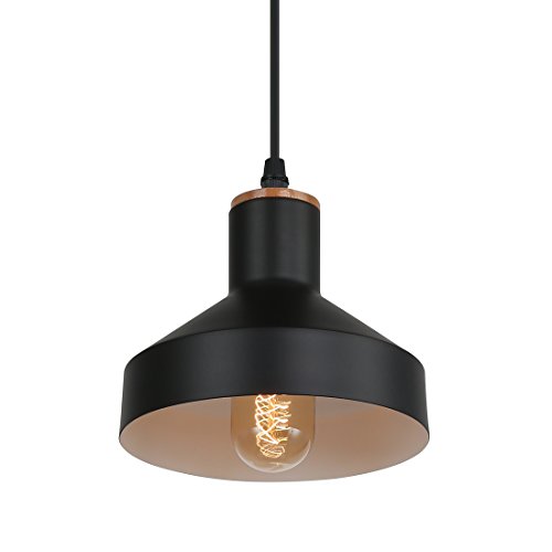 Light Society Vedder Mini Pendant Light, Matte Black with Natural Wood Accent, Vintage Modern Farmhouse Lighting Fixture (LS-C144)