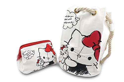 Finex Hello Kitty CANVAS White Casual Crossbody Cross-body Handbag Bucket Backpack Drawstring o...