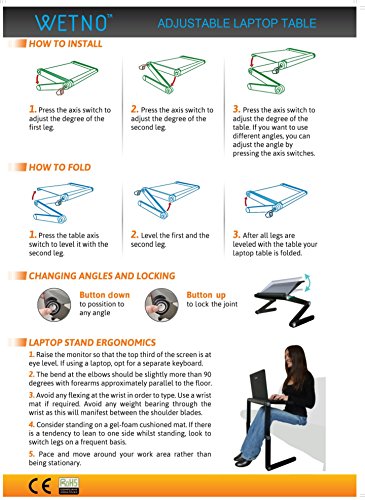 Wetno™ Adjustable Vented Laptop Table Laptop Computer Desk Portable Bed Tray Book Stand Multifuctional & Ergonomics Design Dual Layer Tabletop and Removable Side Tray.