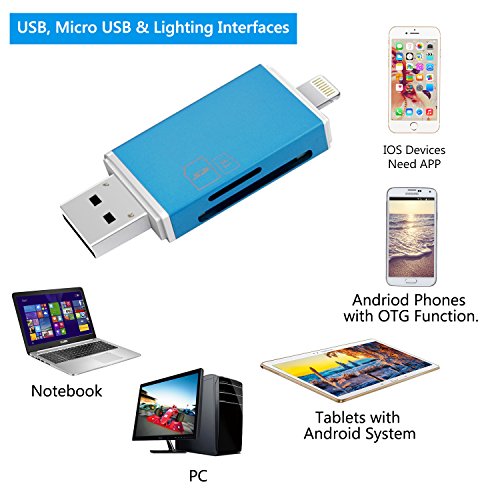 ❤** Summer Promotion just for 2 DAYS! ** 3 IN 1 CARD READER - Lightning, standard USB and micro USB plug combination, making the card reader compatible with all tablets, Mac, PC, Notebook, Android smartphones(Android phone must with OTG function), Apple Iphones. Compatible with all iphone and ipad with IOS 9.2 or up to Newest System 10.3.2.