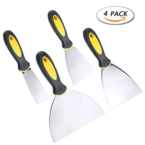 - ★BEST COMBINATION★ 4 PCS best combination putty knife set included a 1/2" putty knife, a 3" spreader, a 4" and a 6" taping knife. Most helpful set for wall fixing.