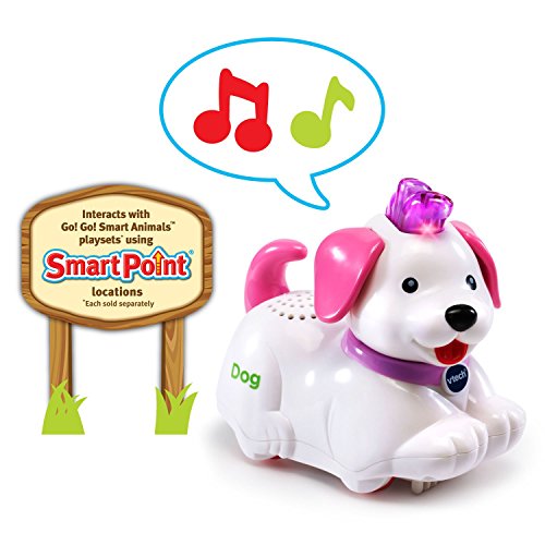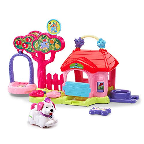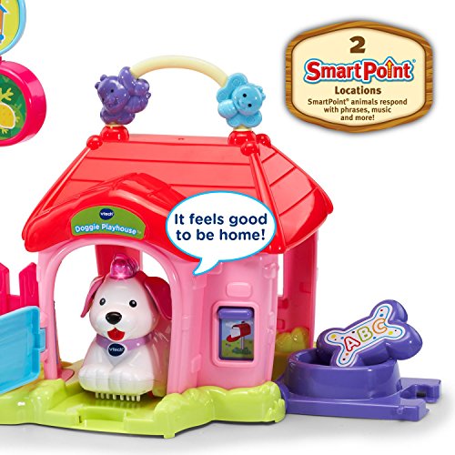 -. Feature : Explore this online exclusive Doggie Playhouse for girls, ride on the swing and search for buried treasure; Dotty the Dog teaches the letter D and the name of the animal through pretend play / SmartPoint Labrador responds to two SmartPoint locations with different phrases, music or fun sound effects; 30+ songs, melodies, sounds and phrases / Build motor skills by sliding the spinning beads, pushing the dog on the swing and searching for buried treasure in the yard / For even more fun, add other Go! Go! Smart Animals (sold separately) to the Doggie Playhouse / Works with Go! Go! Smart Animals, Go! Go! Smart Wheels and select Go! Go! Smart Friends playsets (each sold separately). Included SmartPoint Labrador requires 2 AAA batteries (included for demo purposes only; new batteries recommended for regular use); intended for ages 1 to 5 years