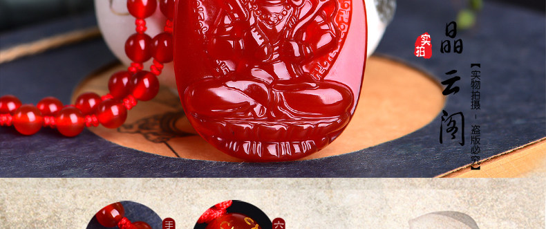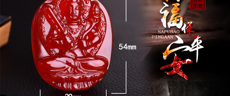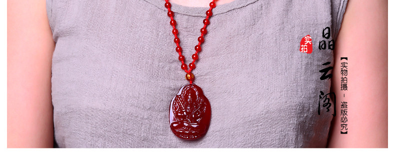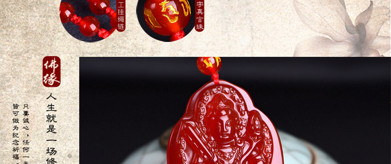开光天然红玛瑙虚空藏菩萨项链 生肖牛虎本命佛守护神男女吊坠