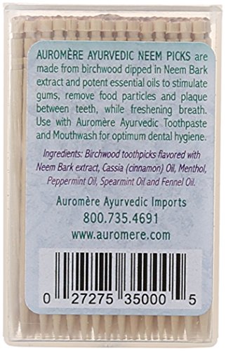 Auromere Ayurvedic Toothpicks, Neem, 100 Count (Pack of 12)