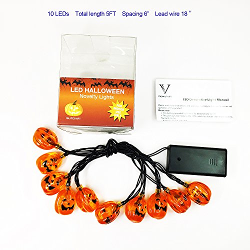 - 3D Pumpkin Lights String Dimension:10 LED bulbs in total,the 3D pumpkin size is 0.98 x 1.4 inch; Spacing 6",lead cord 18" ,5 FT in total length