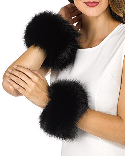 Binding : Apparel Product Description Black Wide Fox Fur Slap on Cuffs / Bracelets - Pair. So easy to wear. Just unroll, position on wrist and slap on. Take any sweater from your wardrobe and dress it up with these awesome slap on fox bracelets or wear them on bare skin. Great gift idea. Sold as a set of two. Available in a choice of colors. Measurement: 2.5 inches wide from seam to seam. Add approximately 2 inches with fur extension. 10.25 inches long. 0