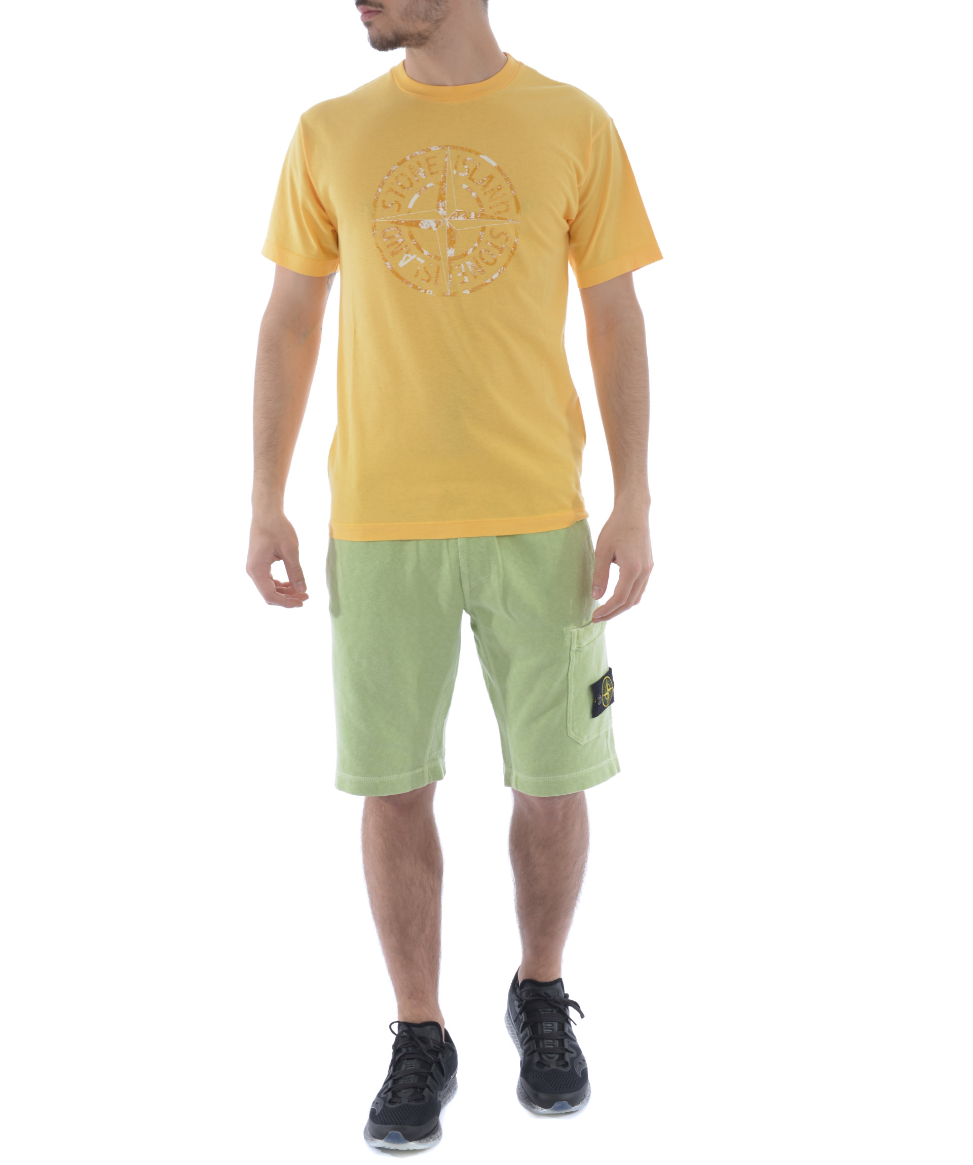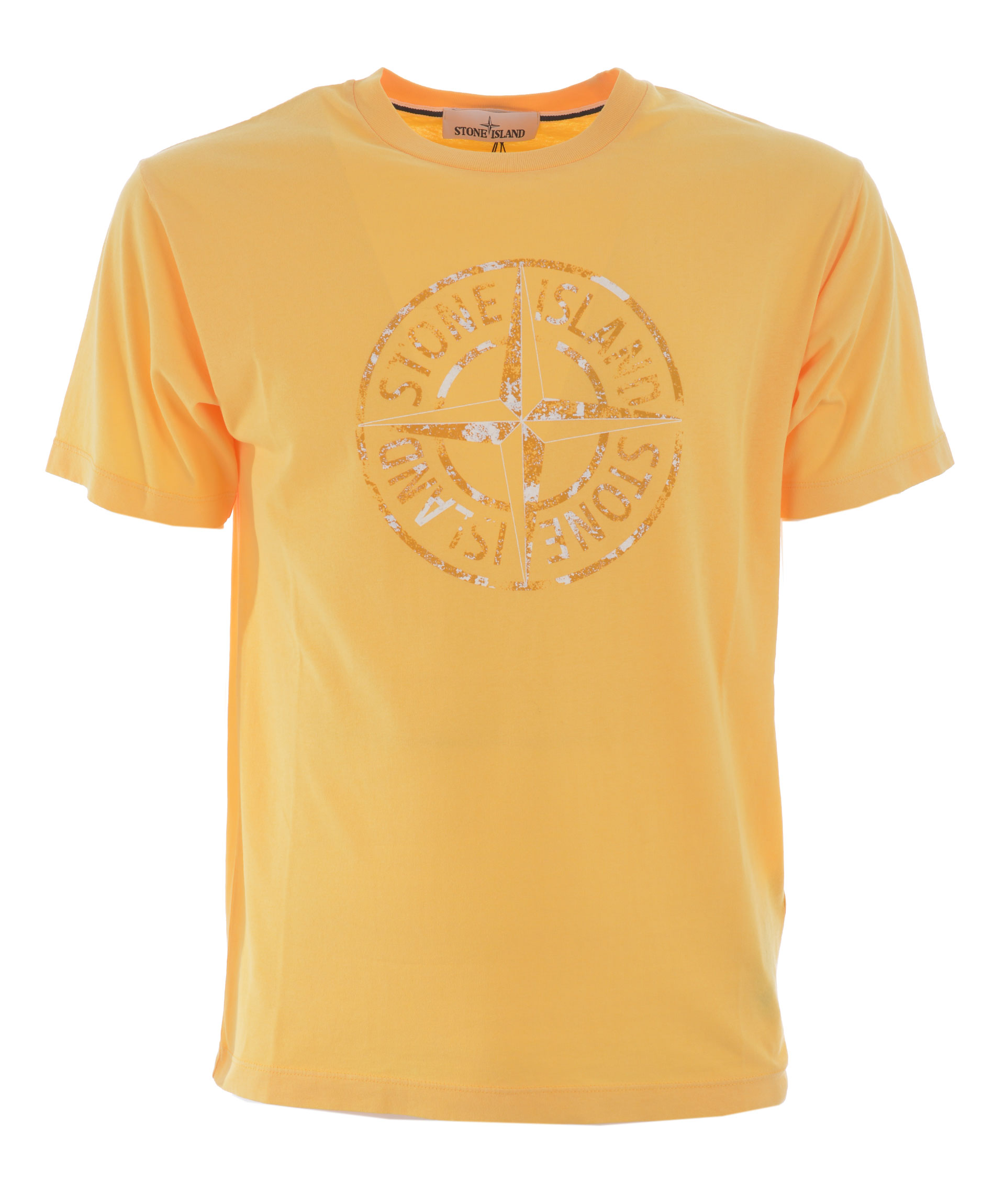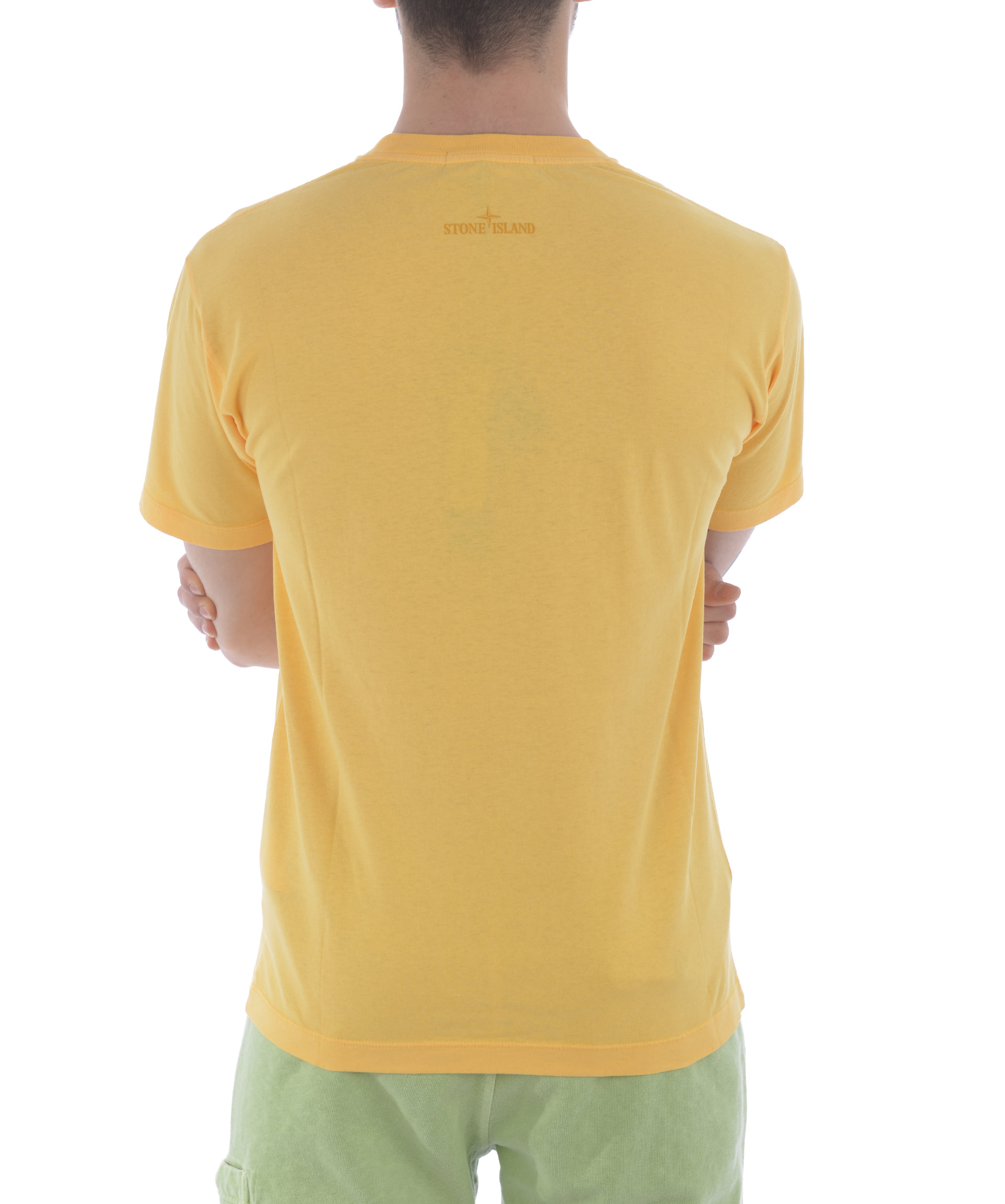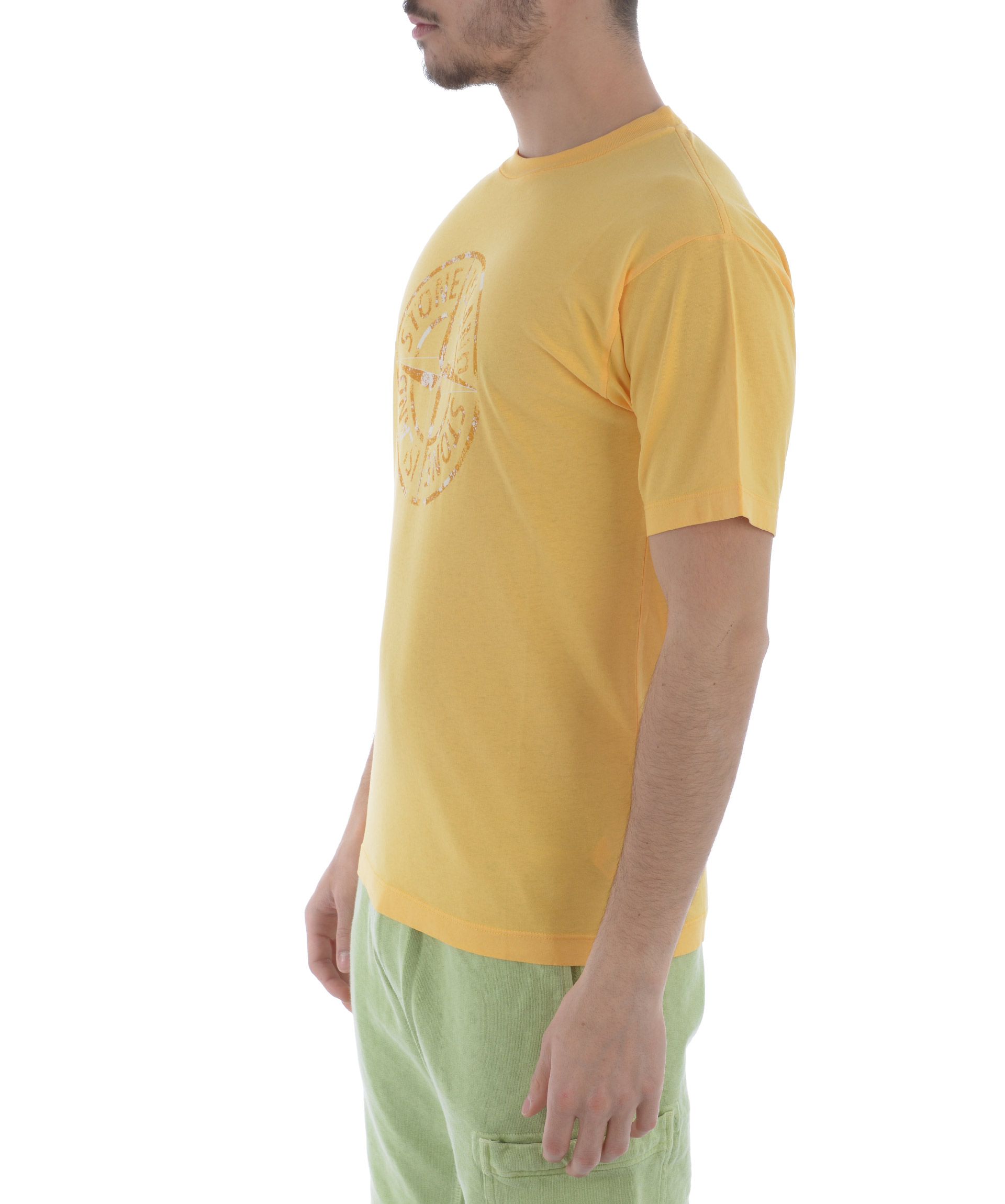 T-shirt Stone Island in cotone Giallo tuorlo. Stampa logo frontale. Girocollo. Manica corta. Misura in foto S 100% cotone