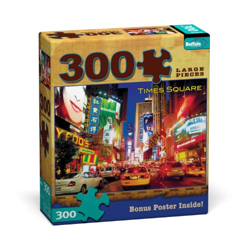 -. Binding : Toy -. Brand : Buffalo Games -. EAN : 0079346025282 -. Feature : Contains 300 pieces / Finished size is 21.25 x 15 inches / Manufactured from premium quality materials / Made in the United States / Bonus poster included for help in solving -. IsAdultProduct : 0 -. ItemPartNumber : 2528 -. Label : Buffalo Games -. Manufacturer : Buffalo Games -. Model : 2528 -. MPN : 2528 -. NumberOfItems : 1 -. PackageQuantity : 1 -. PartNumber : 2528 -. ProductGroup : Toy -. ProductTypeName : TOYS_AND_GAMES -. Publisher : Buffalo Games -. ReleaseDate : 2010-10-01 -. Studio : Buffalo Games -. Title : Buffalo Games Large Piece Travel, Times Square - 300pc Jigsaw Puzzle -. UPC : 079346025282 -. Warranty : 90 day warranty against manufacturer defects