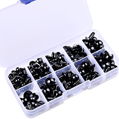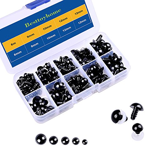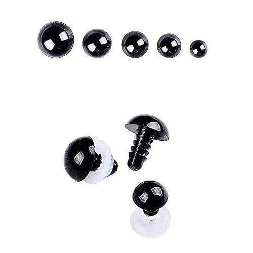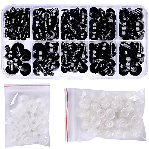 150 Pcs 6-12mm Plastic Safety Eyes with Washers for Doll Making (Black)