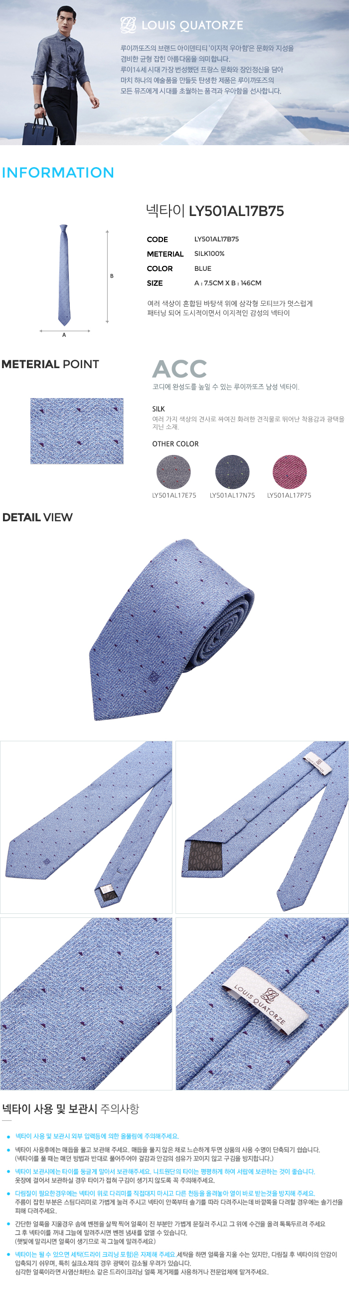 - 전국 백화점 (루이까또즈, 웅가로 넥타이) 매장에서 A/S받으실 수 있습니다. (1년간 무료)