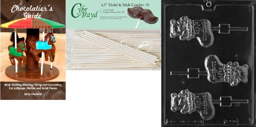 Cybrtrayd 'Baby's First Christmas Lolly' Christmas Chocolate Candy Mold with 50 4.5-Inch Lollipop Sticks and Chocolatier's Guide