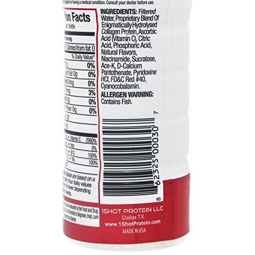 -. Feature : ➤ 24g PROTEIN & 0g SUGAR IN EACH SHOT: Each Shot Contains 24g of Marine Collagen Clean Protein and 0g of Sugar / ➤ MORE CONVENIENT THAN A PROTEIN SHAKE, LESS SUGAR THAN A PROTEIN BAR: No Powder Mess or Shaker Bottle Clean-Up and No Refrigeration Required / ✈ POCKET-SIZED BOTTLE FOR ON-THE-GO CONVENIENCE: 3 fl. oz. Bottle is the Perfect Size to Take On-The-Go and Easily Throw into your Gym Bag. Plus, it's TSA Approved so you can Fly With It! / ➤ 96 CALORIES - GLUTEN FREE & LACTOSE FREE: Supports Lean Muscle Mass, Post-Exercise Recovery, Helps with Weight Management, and Satisfies Hunger for Longer / ✔ TRY IT RISK-FREE WITH OUR NO HASSLE MONEY BACK GUARANTEE: 4 Delicious Flavors with No Preservatives (Tropical and Berry)