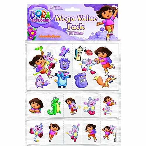 -. Feature : Kids favorite Dora the Explorer, boots, Isa, backpack, map and swipe are featured in this temporary tattoo. / Each package contains a precise 120 Dora and friends tattoo. / Design with different Dora scenes with friends in her exploring adventure. / Precisely measured 12 1/2" x 8 3/8" for each strip. / Ideal addition to your loot bags! assured to make your guests happy even after the party ends!