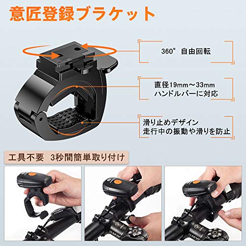 弊社独自デザインのブラケットは工具を要らずに、約3秒で自転車のハンドルバーに着脱可能なので、盗難防止に役に立っております。また、内径は滑り止めシリコン材を採用し、しっかりと安定した取付で、ブレやずれなどの心配もありません。前照灯本体を装着したら、前後360°まで回転できます、様々なシーンで大活躍!