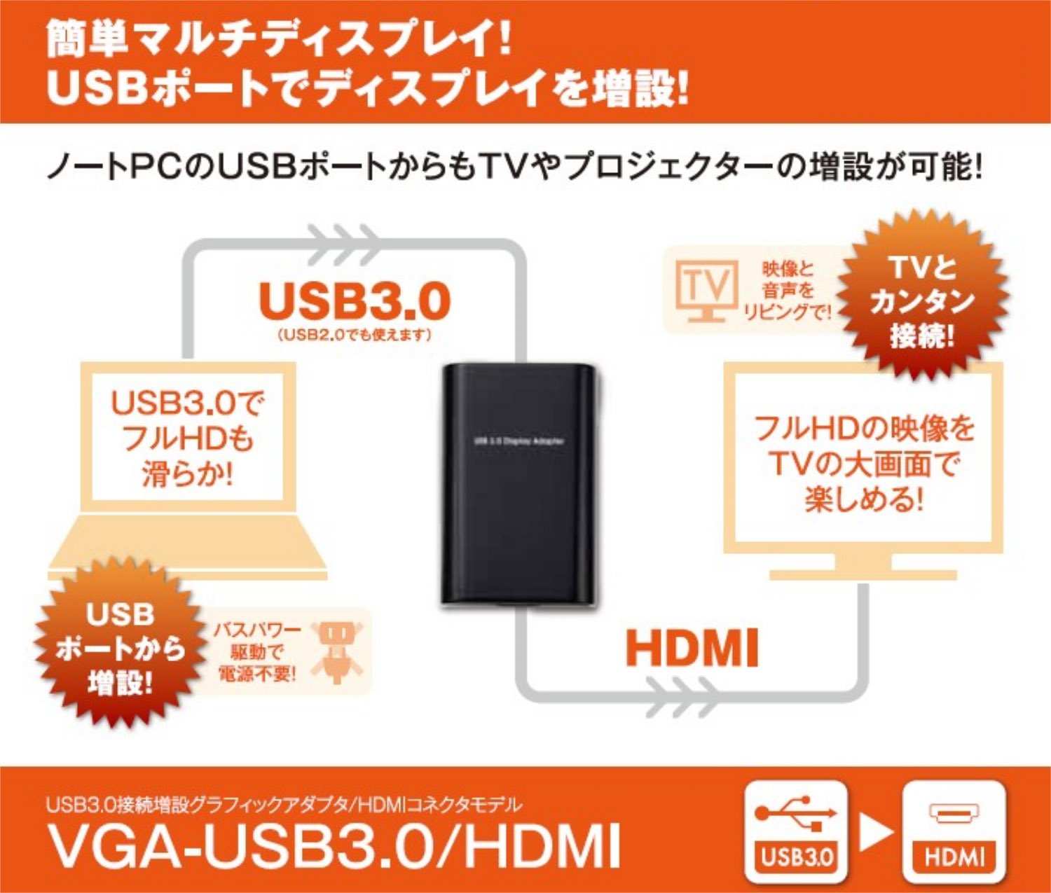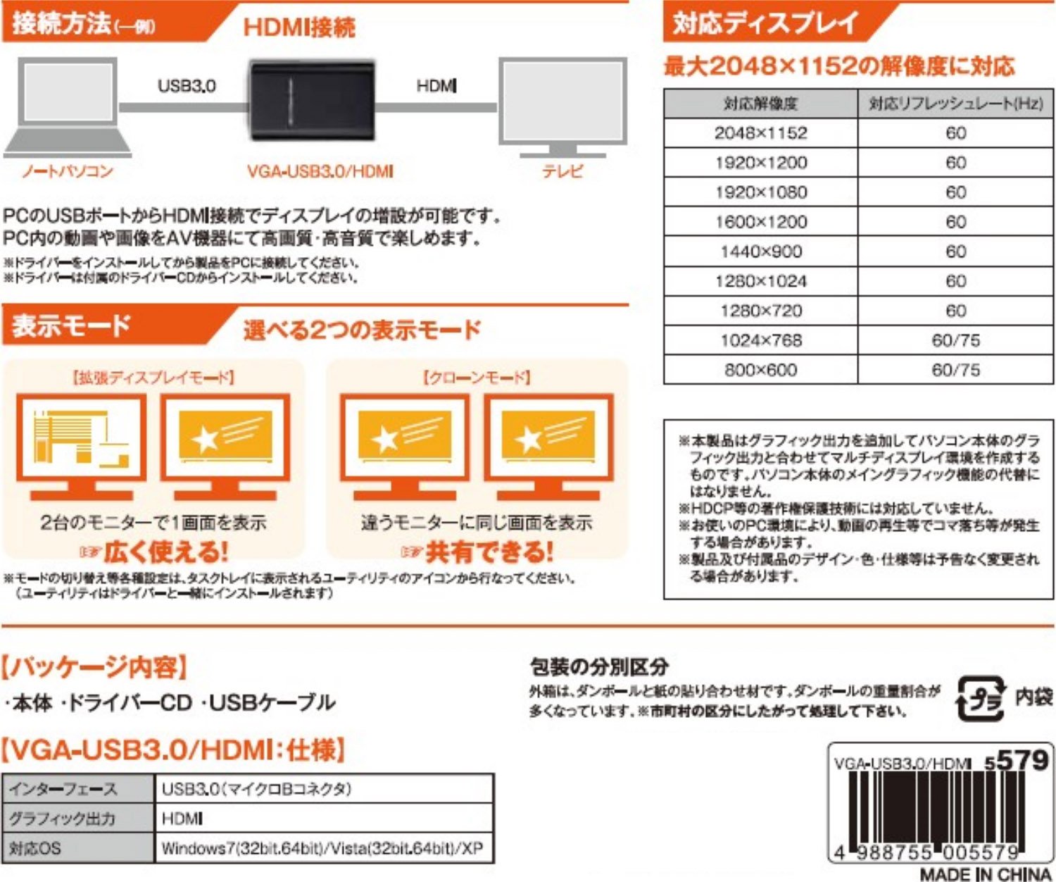 Support for resolutions up to 2048 x 1152 Smooth display using USB 3.0 broadband is possible.