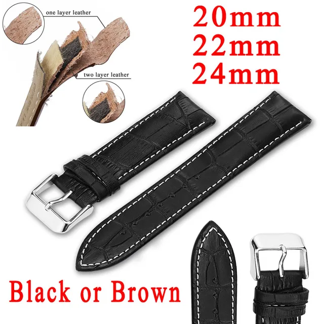 | [해외]시계 가죽 시계 밴드 20 미리메터 22 미리메터 24 미리메터 블랙 브라운 시계 스트랩 남성과 여성 시계 벨트 소년 소녀 액세서리 |