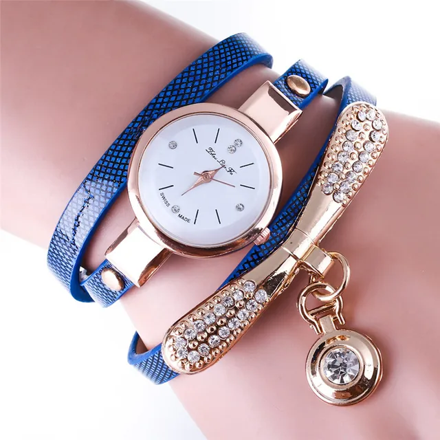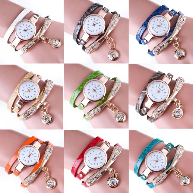 | [해외] 여성 시계 팔찌 시계 숙녀 가죽 라인 석 아날로그 석영 스테인리스 손목 9 색 시계 여성 #210717 |