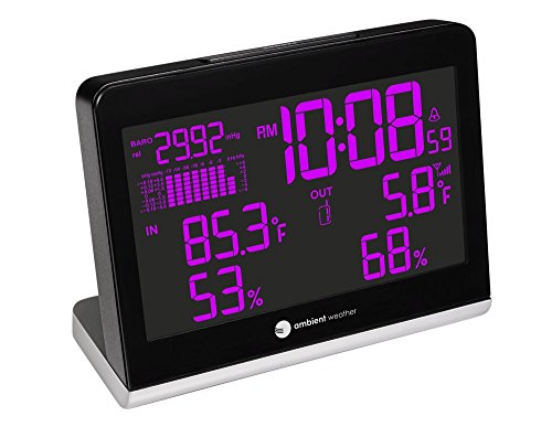 -. Title : Ambient Weather WS-8600 Weather Station Clock with 256 Color Changing Wireless Temperature Humidity, and Barometer Display (Black)