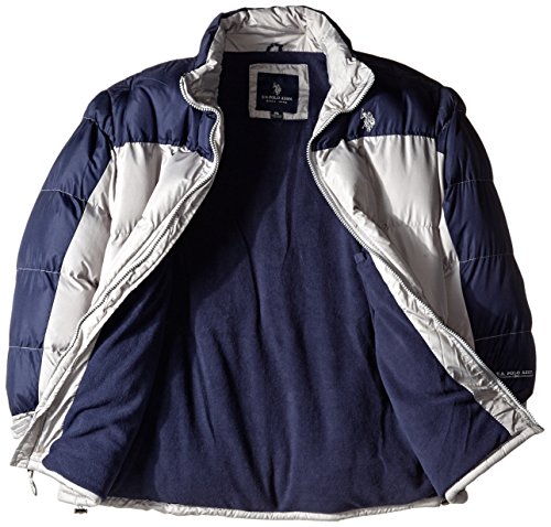 -. Binding : Apparel -. Brand : U.S. Polo Assn. -. Department : mens -. Feature : Color blocked / Two zip close pockets / Elastic drawstring waist pulls with toggle / Small embroidered logo -. Label : US Polo Assn Mens Traditional Collections - Outerwear & Swim -. Manufacturer : US Polo Assn Mens Traditional Collections - Outerwear & Swim -. Model : 10-5574-Q8 -. PackageQuantity : 1 -. ProductGroup : Apparel -. ProductTypeName : OUTERWEAR -. Publisher : US Polo Assn Mens Traditional Collections - Outerwear & Swim -. Studio : US Polo Assn Mens Traditional Collections - Outerwear & Swim -. Title : U.S. Polo Assn. Men's Color Block Bubble Jacket