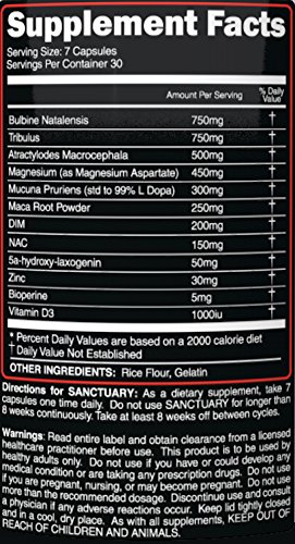 Primeval Labs has put an end to defective post cycle therapy products by releasing the beneficially dosed and scientifically studied ingredient based PCT called Sanctuary. This product sets new standards by including some of the most effective ingredients for advanced recovery, hormone regulation and natural testosterone production. Unlike most PCT's, Sanctuary does not rely on a proprietary blend for ingredients but instead opting for a full 100% transparent label so you know EXACTLY how much you are getting per serving. A stacked ingredient profile that consists of 750mg Tribulus, 200mg DIM, 750mg of Bulbine Natalensis, 500mg Atractylodes Macrocephala, 300mg Mucuna Pruriens, 250mg Maca Root Powder and many others forms this powerhouse highly beneficial to your post cycle internal needs. From the benefits of Vital Organ Support to improved Libido, Sanctuary is a must for anyone looking to get the highest quality Post Cycle Therapy treatment. HIGHLIGHTS OF PRIMEVAL LABS SANCTUARY PCT: Liver & Organ Support Enhances natural Testosterone Production Reduces Estrogen Inhibits Aromatization Improves Recovery Boosts Libido Supports Sexual Performance Enhances Lean Mass Prevents Fat Gain Inhibits Prolactin Antioxidant Support Improves overall mood and well-beingFeature