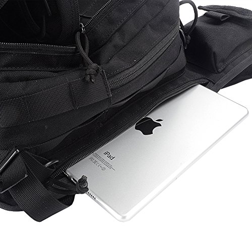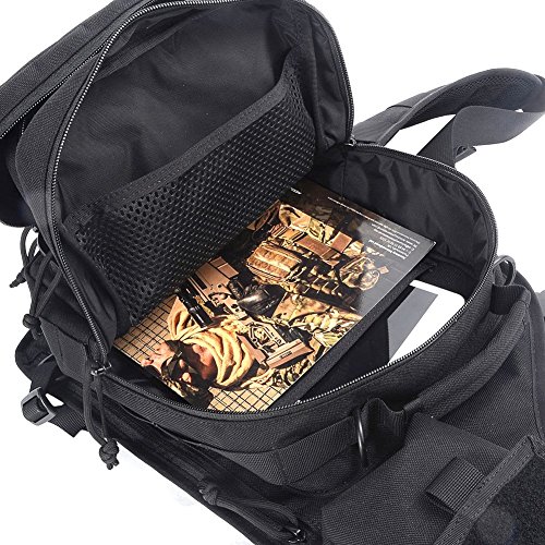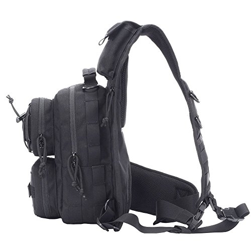 -. Feature : 1.Handy, versatile 3 ways carrying style (Shoulder Bag, Chest Sling - Back Sling, Hand Carry) ,small MOLLE pouch.Wide shoulder straps makes us easy and comfortable to ware . / 2.Small, compact, goes anywhere design is perfect when large packs are too big, too bulky, too heavy. / 3.?High strength abrasion 1000D fabric - Ultra tough, Lightweight, durable material with adjustable, detachable strap. Perfectly suits you body shape. / 4.?Perfect for indoor and outdoor uses including Suit for running, hiking, camping, hunting, cycling, shopping, traveling, climbing, sport, go to school, tools bag and so on . / 5.Multiple Zippered Pockets to Keep All Your Stuff Organized. Please kindly refer to the size chart before placing order. ?Dimensions: 11.02" W x 16.5" H x 6.69" D Weight : 1.76 lb