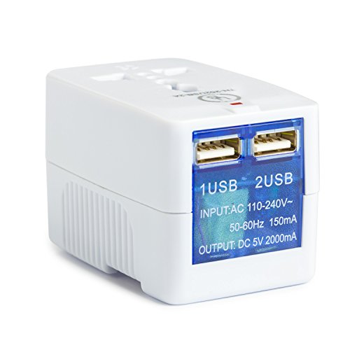 Perfect travel adapter with a universal outlets and two 2.0 USB charging ports