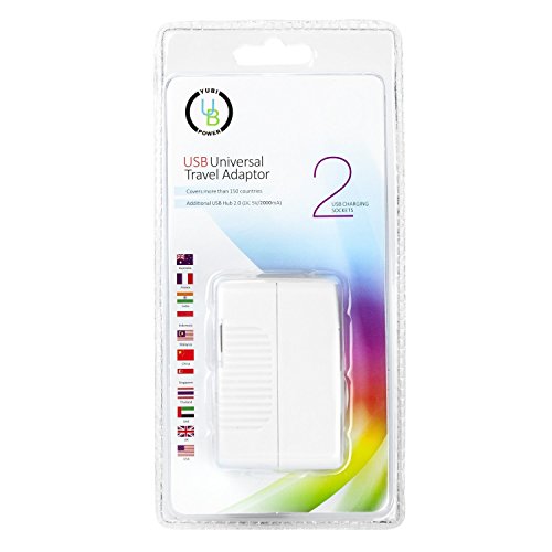 This Yubi Power travel plug adapter has a universal 3 prong outlet that allow you to plug in most plug types from around the world, excluding the larger South African type M. In addition, it has two 2.0 USB charging ports. So you can plug it a total of three devices at once.