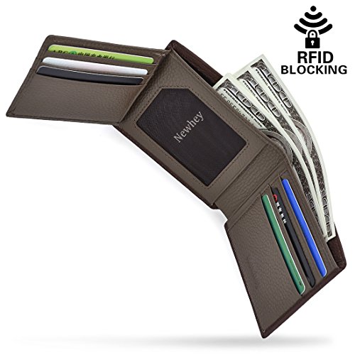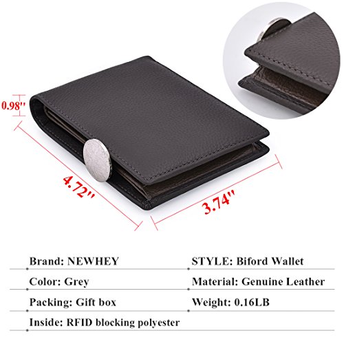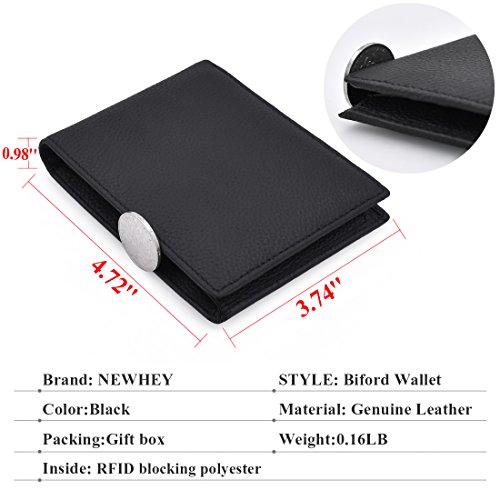 Studio : NEWHEY Publisher : NEWHEY Binding : Apparel Product Description NEWHEY Mens Wallet Genuine Leather RFID Blocking Credit Card Wallet Vintage Black Wallet Simple designed with pure color, fashion look with exquisite texture,With large capacity inside,It is small enough for you to carry it in front pocket comfortably; It's funny how moving from a big wallet to a smaller one makes you realize how much unnecessary stuff you put in it. Dimension: 4.72 " x 3.74" x0.98" (Length x Width x Thickness)