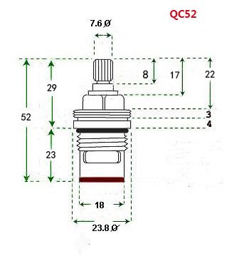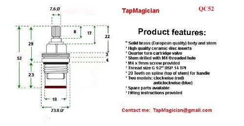 Replacement Brass Ceramic stem Disc cartridge Faucet Valve Quarter turn PAIR 1/2" fits PAINI (52mm short stem)