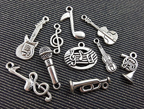 10 Mixed Tibetan Silver Plated Music Melody Charms Pendants (NS520)