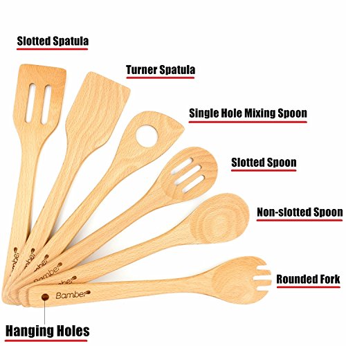-. Feature : TOTALLY ECO-FRIENDLY: our spatulas constructed of premium solid beech wood from Europe, hard and durable; say goodbye to cheap lacquer and to chemical pollutions / NO SPLINTERS & NON STICK: our spatulas undergone three times of burnishing, which create incredibly sleek non stick surface without any splinters compared with Bamboo; easy to clean / QUALITY GUARANTEED: we are one of the largest wooden kitchenware suppliers of Daiso (Japan's retail giant), so our products are all made compliant with Japan regulations! / PROTECT YOUR COSTLY PAN: Worry about the damage metal spatulas will cause for the coating of your expensive pan? Fret that the silicone or plastic turner will cause toxic chemicals for your family? Then you need our wood spatulas! / ERGONOMIC DESIGN: slightly bent handle fits your hand perfectly and easy to handle; as great kitchen aid, you can cook eggs, steaks, vegetables, cake with it