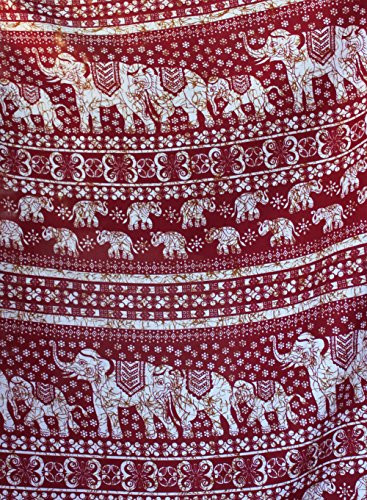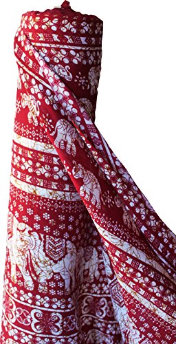 RaanPahMuang Light Viscose Rayon Fabric Flower Shower Elephants 42in x 3yd Bolt, Red
