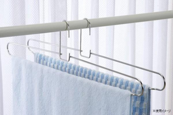 お手入れ簡単で耐久性抜群な18-8ステンレス製。竿やベランダでスペースを占領することなくバスタオルを干せます。