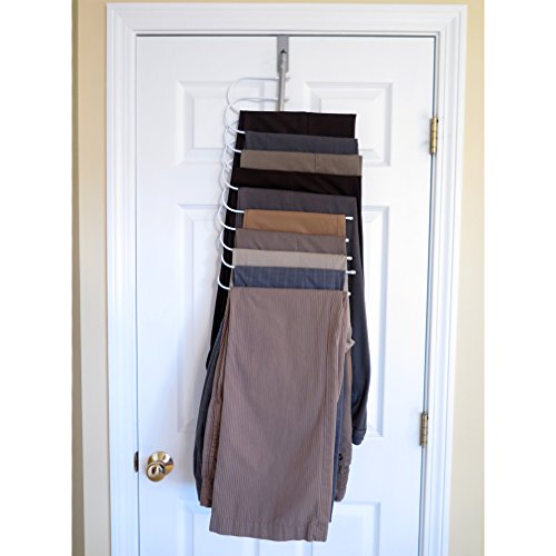 -. Binding : Kitchen -. Brand : Evelots -. Color : Silver & White -. EAN : 0740737647283 -. Feature : Put an end to overstuffed drawers and closets with this convenient over the door space saving cascading pants hanger! / Keep pants and slacks neat, organized, and within reach. / Features 10 pant hangers that fit easily over most doors. / Not only will this pants hanger make your closet a whole lot cleaner, it will also extend the life of your clothes. / *Evelots is the only certified seller of their items. Evelots is not a wholesaler so there should be no other sellers selling the exact same products. Any other sellers are unlawfully selling their own items using our certified Trademarked business name. They are breaking the law of trademark infringement and Amazon's rules.* -. IsAutographed : 0 -. Label : Green Mountain Imports -. Manufacturer : Green Mountain Imports -. MPN : 5033 -. PackageQuantity : 1 -. PartNumber : 5033 -. ProductGroup : Home -. ProductTypeName : HOME -. Publisher : Green Mountain Imports -. Size : Fits doors up to 1 1/4" thick Approx. 21"H x 13"W. -. Studio : Green Mountain Imports -. Title : Evelots Over The Door Cascading Pants Hanger Space Saver & Organizer All In One -. UPC : 740737647283