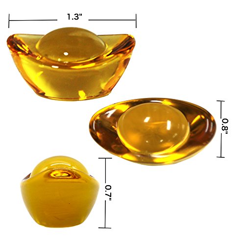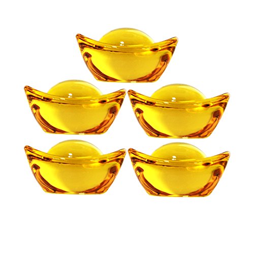 Omonic 5 Pcs 1.3" set Yellow Crytal Feng Shui Golden Ingot / Yuan Bao YuanBao for Wealth Luck Fortune with Gift Box